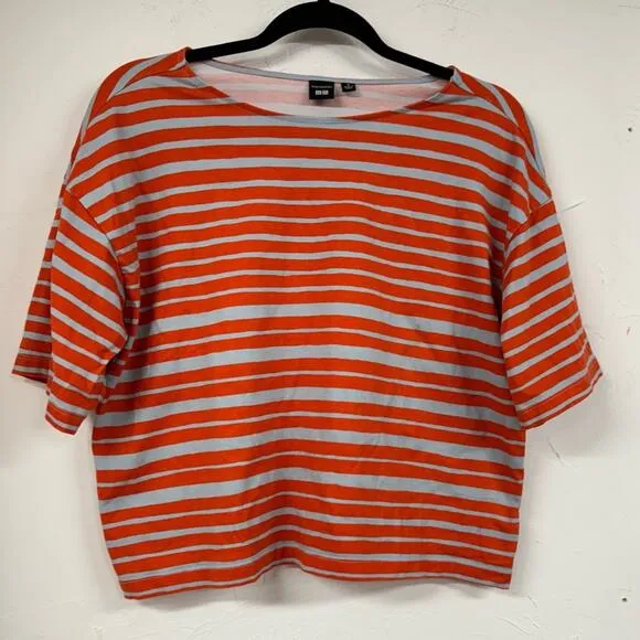 Marimekko X Uniqlo Orange & Grey Striped Short Sleeve Tee Shirt S - $40 - From Lisa