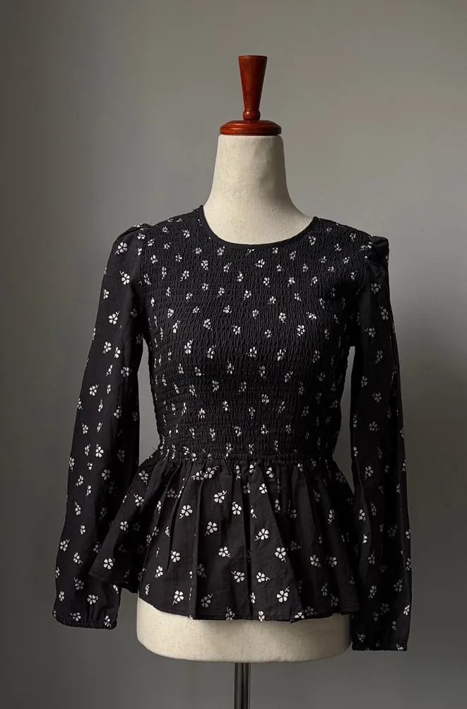 This elegant black floral top is perfect for any occasion. Featuring a delicate floral pattern, it a... Show more
