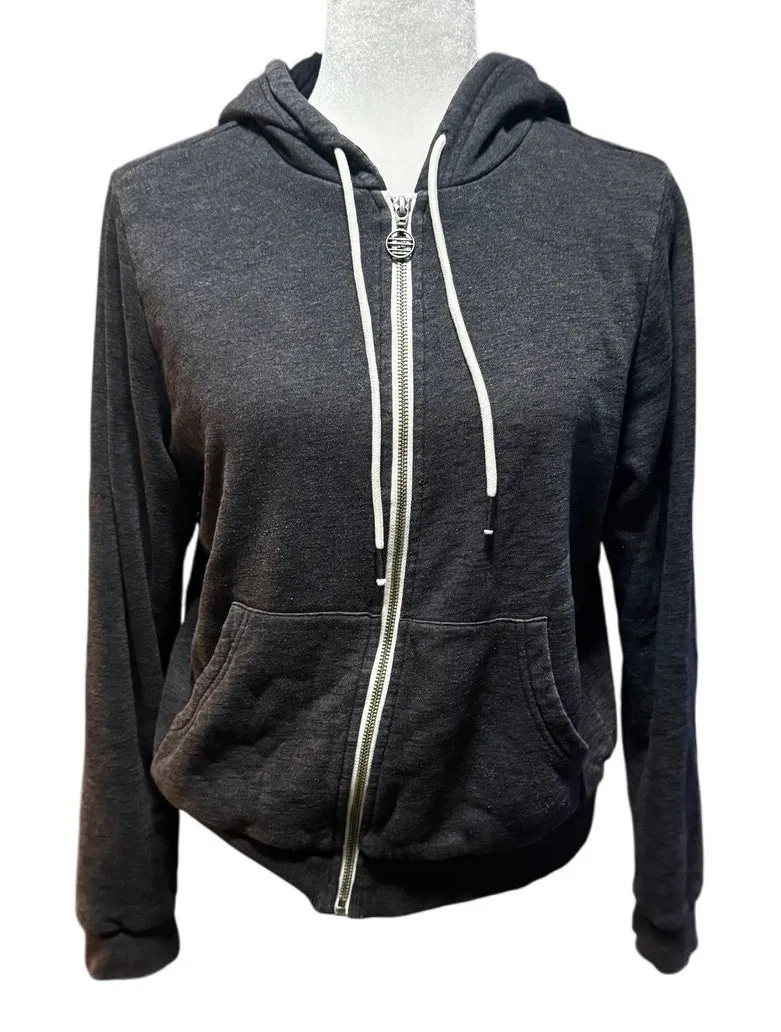 -First photo is AI model to visualize style and fit; see item photos for actual item and condition- Soft, lightweight Marine Layer hoodie in classic dark charcoal. This is one of their earlier styles, featuring a super-soft t-shirt knit lining. Full zip front with white drawstrings, kangaroo pockets, and Marine Layer logo zipper pull. Very good pre-owned – lightly worn, no major flaws Charcoal Gray Lightweight + t-shirt knit lining for extra softness Hooded Kangaroo pockets Ribbed cuffs & hem Blend tag present but faded (very soft—likely cotton/modal/poly typical of Marine Layer) Size: S (unisex older fit — see measurements) Approx. Measurements (flat): Pit to pit: 22" Length: 22" Sleeve: 24" Shoulder: 16" Cozy basics, soft hoodie, travelwear, California casual, surfer style, minimalist athleisure, streetwear casual, loungewear, classic zip hoodie, everyday essential