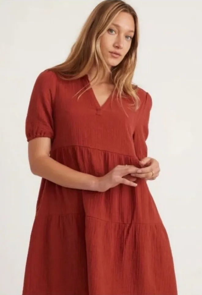 Tiered baby doll dress from Marine Layer 100% lightweight cotton gauze material Loose fit Tiered Poc... Show more