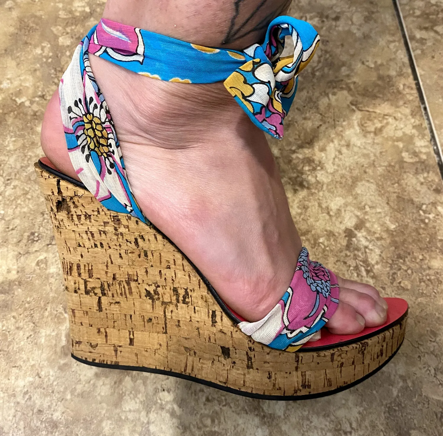 Mario Bologna Multicolor Floral Tie Lace Up Wrap Around Wedge Espadrille Sz 5.5 Blue - $59 - From Erica