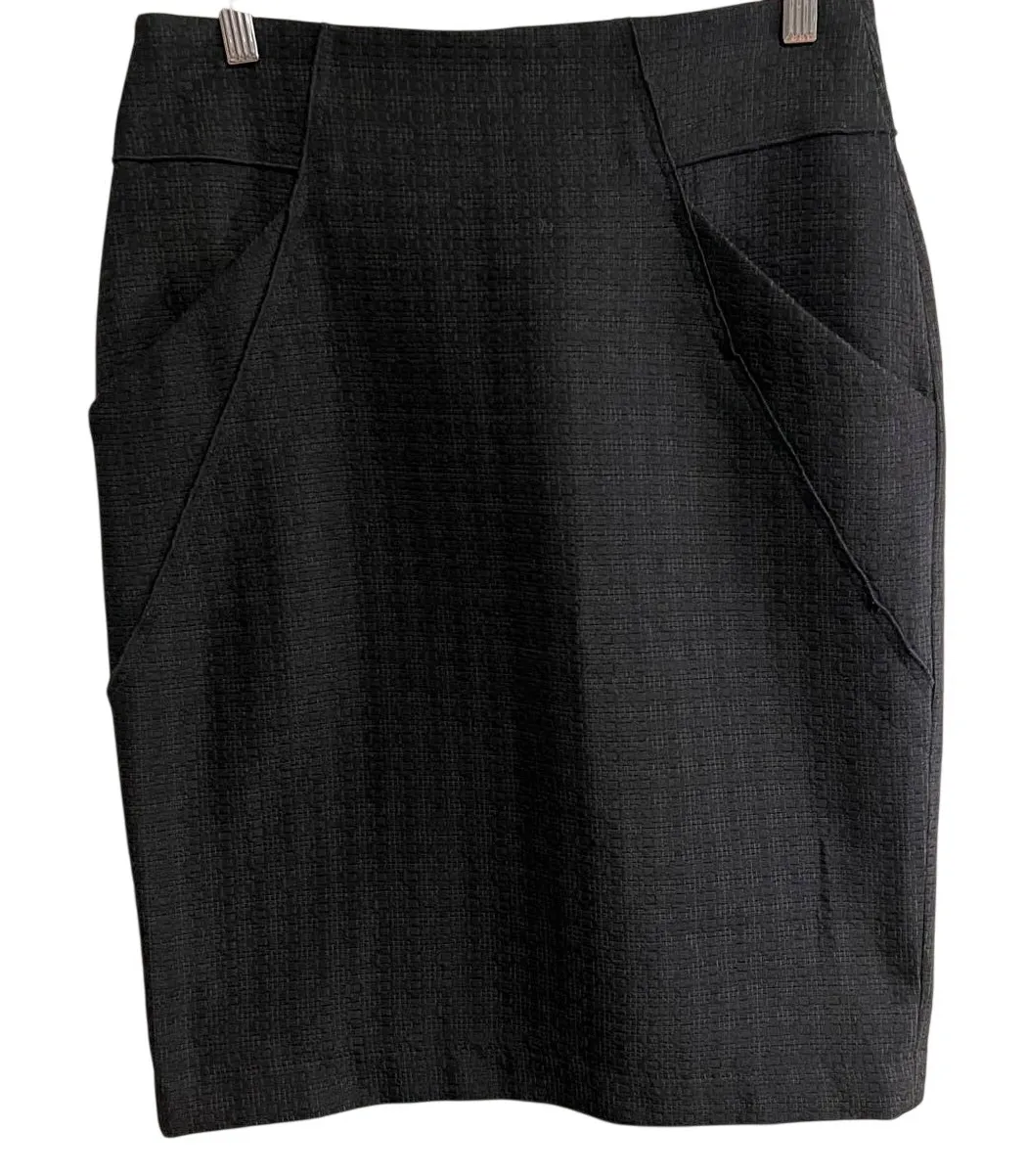 Mario Serrani Italy Black Pencil Skirt Sz. 4 Extremely well made and in like new condition! Black textured pencil skirt with pockets. Has a great texture and has a nice weight. It has fully functional pockets and a metal zipper on the back. Length: 23.5" Waist: 14.5" Hips: 18.5" 55% Cotton / 45% Polyester Lining is 100% Polyester. workwear italian made classic chic wardrobe staple elevated basics