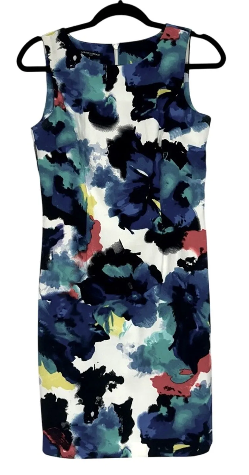 Mario Serrani Multi Color Watercolor Floral Sheath Dress Women 4 Mini Sleeveless Blue - $48 - From Lisa