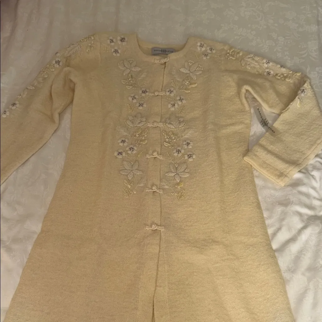 Maris Christina Cream Embroidered boiled wool long Cardigan sweater jacket S - $79 - From Kristine