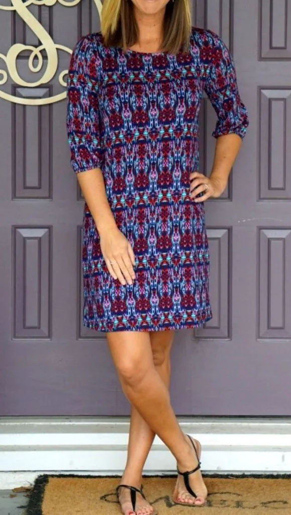 Market & Spruce MAEBY Abstract Long Sleeve Knit Dress NEW Size Medium Stitch Fix Market & Spruce Maeby Abstract Print dress Features a pullover closure, 3/4 sleeves, and a short A-line hemline.