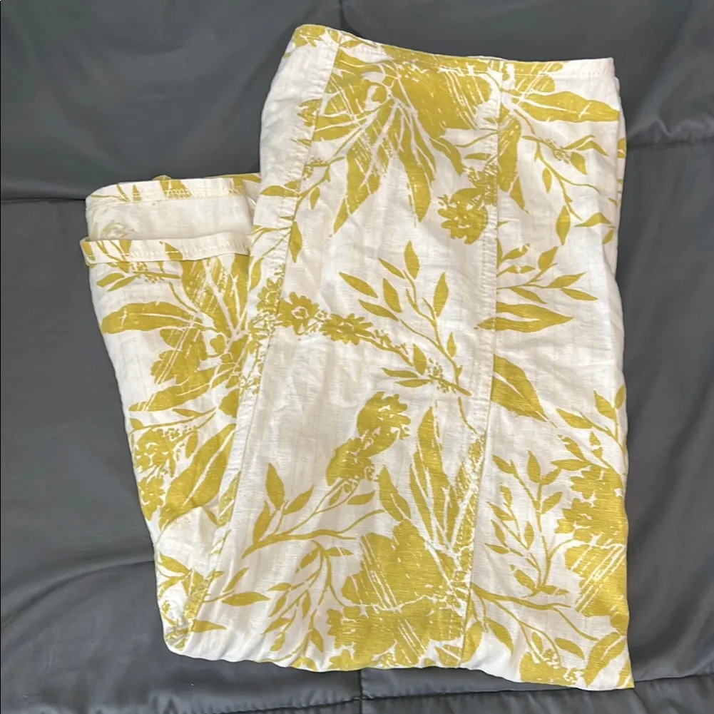 UK size 16, converts to a 12 usually. See measurements below. Linen blend Floral print - ivory and chartreuse Ruffle at bottom Zipper closure Good used condition. No stains or flaws Approx measurements lying flat: 18.5” waist 29” length 896