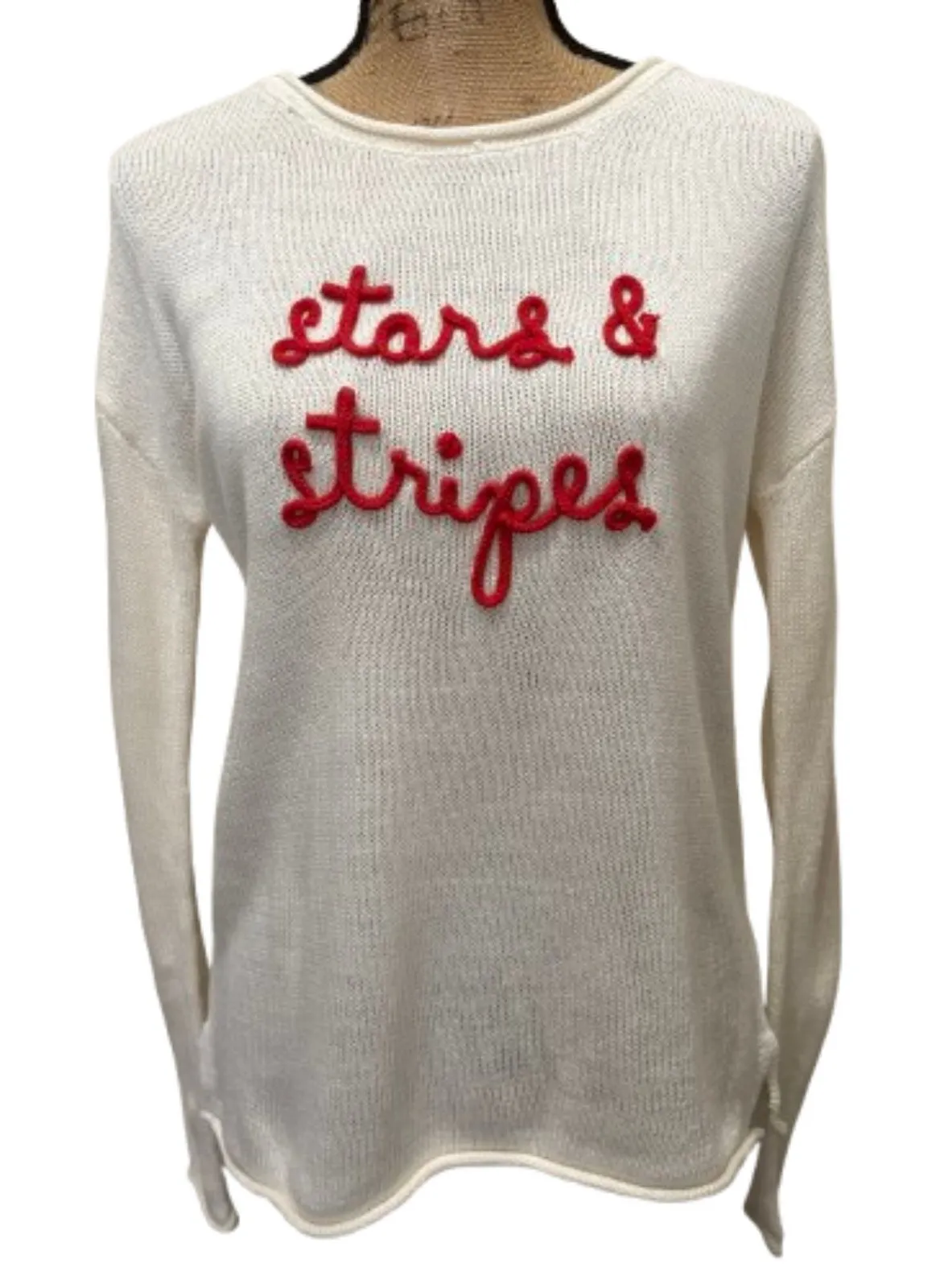 Marled Reunited Stars & Stripes Script Sweater White Red 4th of July Size Small Festive and fun swe... Show more