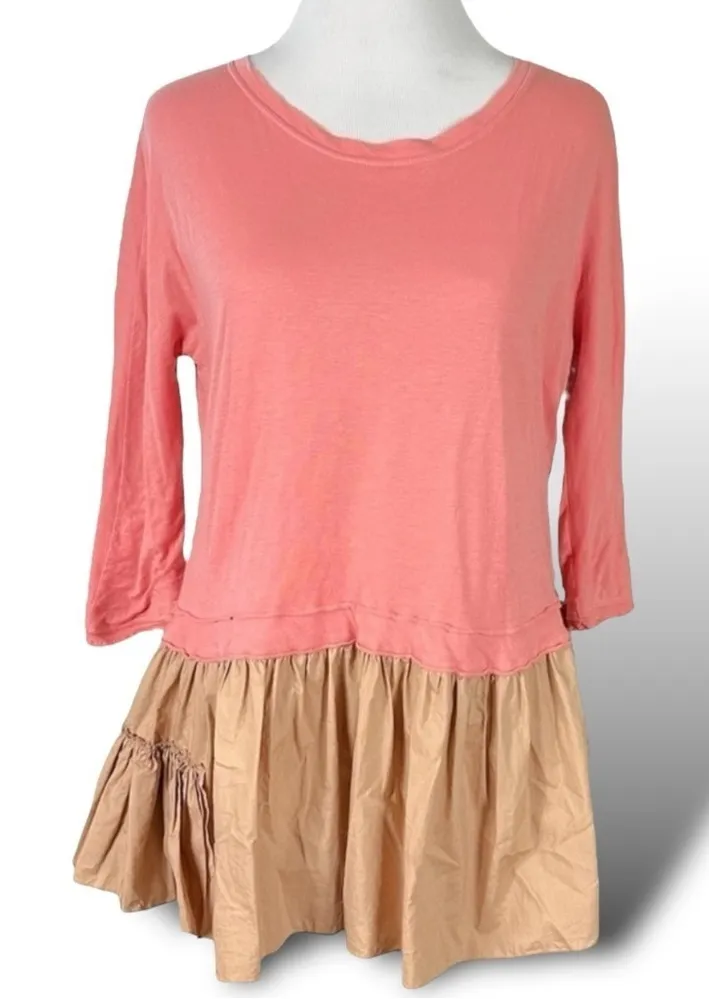 MARNI Color Block Tunic Top Peplum Skirted Hem Pink Peach Tan Size 6 - $71 - From Gina