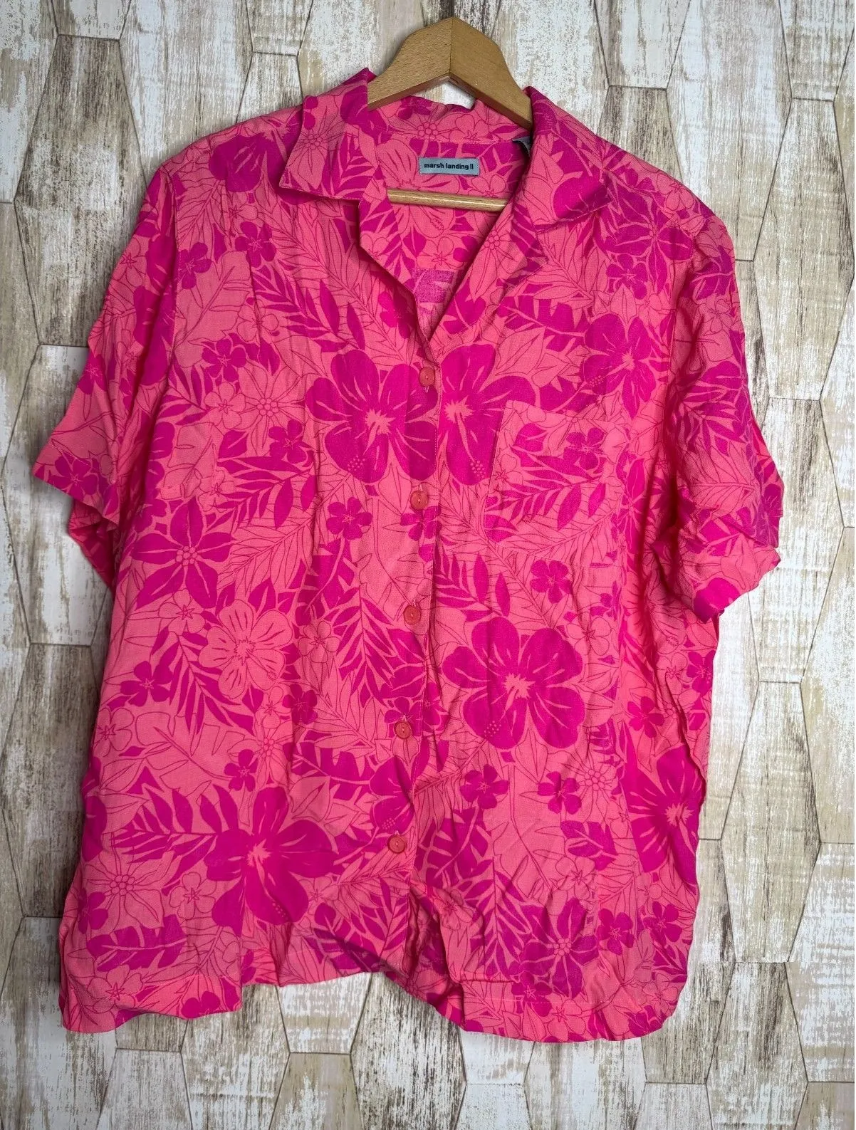 Marsh Landing II Shirt 1X Hawaiian Short Sleeve Rayon Coral Pink - $18 - From C