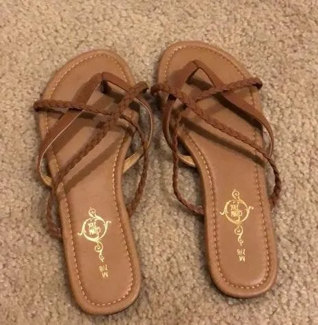 Like new brown braided flip flops // super cute design // size M 7-8 //
