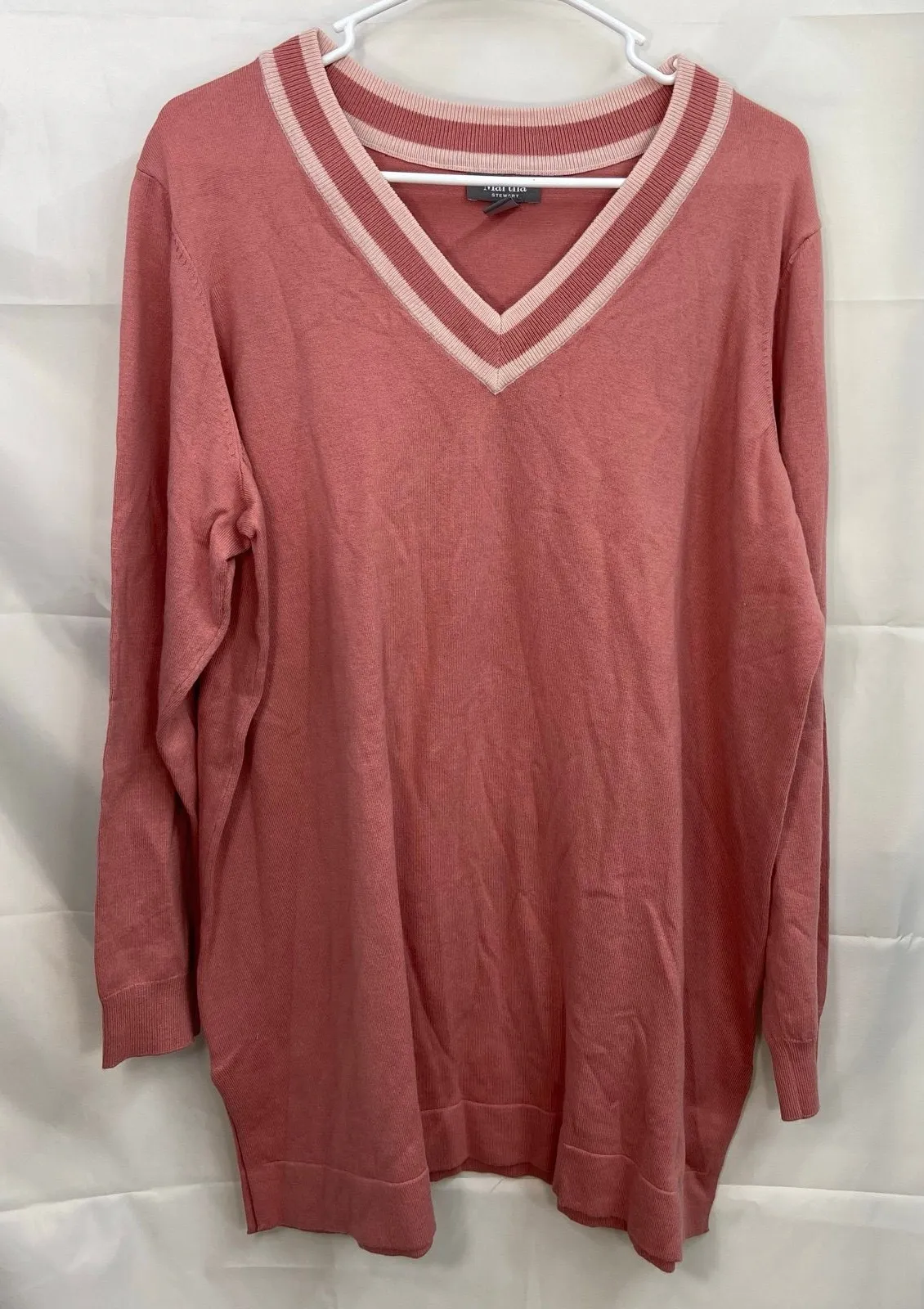 Martha Stewart women's mauve pink striped v-neck stretch relaxed casual sweater Size 1X In new witho... Show more