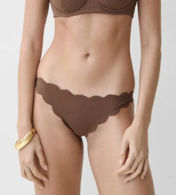 BOTTOM ONLY New without tags-No signs of wear MSRP $159 Signature Marysia bikini bottom in the Antibes style. Designed with the brand’s iconic hand-cut scalloped edges for a refined look. Soft, textured stretch fabric creates a flattering low-rise silhouette ideal for resort and beach wear. Features: Designer Marysia Antibes style Olive green textured stretch fabric Hand-cut raw scalloped edges at waist and leg openings Low-rise bikini bottom silhouette Minimal, flattering design Open to offers/bundles. All orders ship next business day. Questions/ comments welcome! designer swimwear, resort chic, luxury bikini, minimalist swim, beachwear
