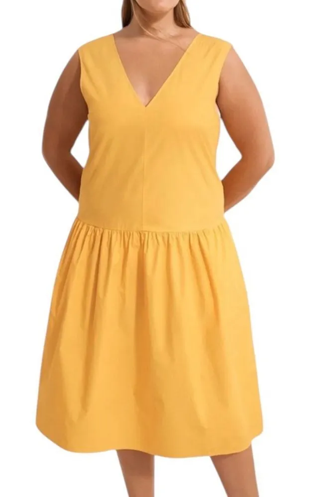 Marysia Resort Lucera Papaya Cotton Dress. Nice quality cotton poplin with drop waist and double v n... Show more