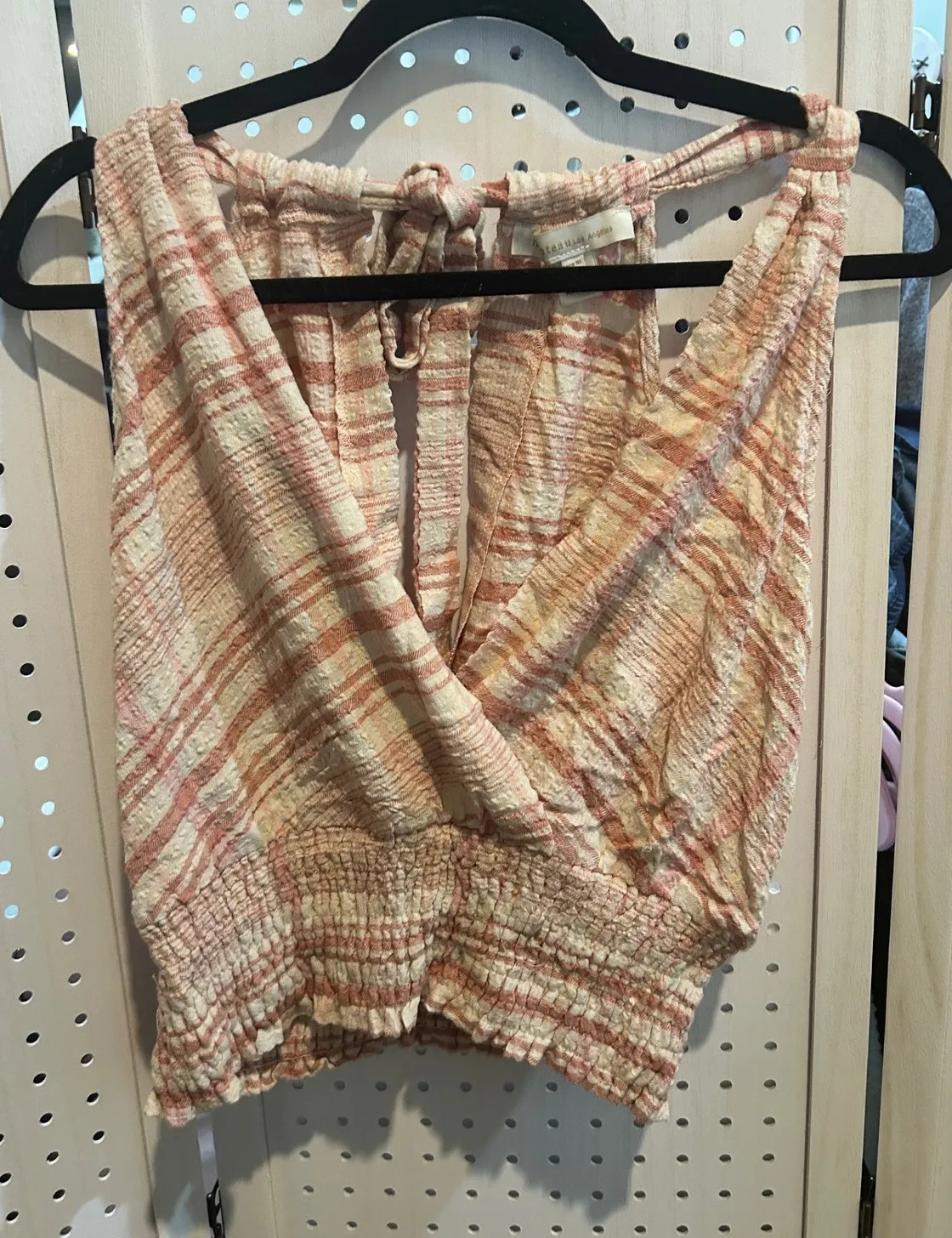 Charming crop top featuring a flattering V-neck and a stylish tie-back design. With its delicate pink stripes, this sleeveless top adds a touch of effortless chic to any outfit. The smocked bottom provides a comfortable and flattering fit. Perfect for a casual brunch with friends or a sunny day out exploring the city, this top is sure to turn heads and make you feel fabulous. - I ship in 1-2 days.