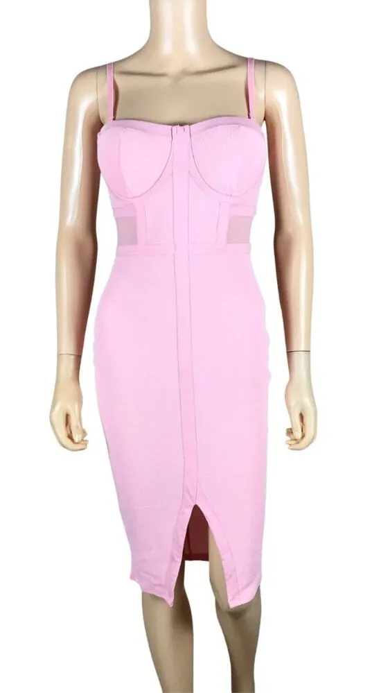 Material Girl Pink Illusion Waist Bodycon Midi Dress Molding at the cups provides a perfect shape,... Show more