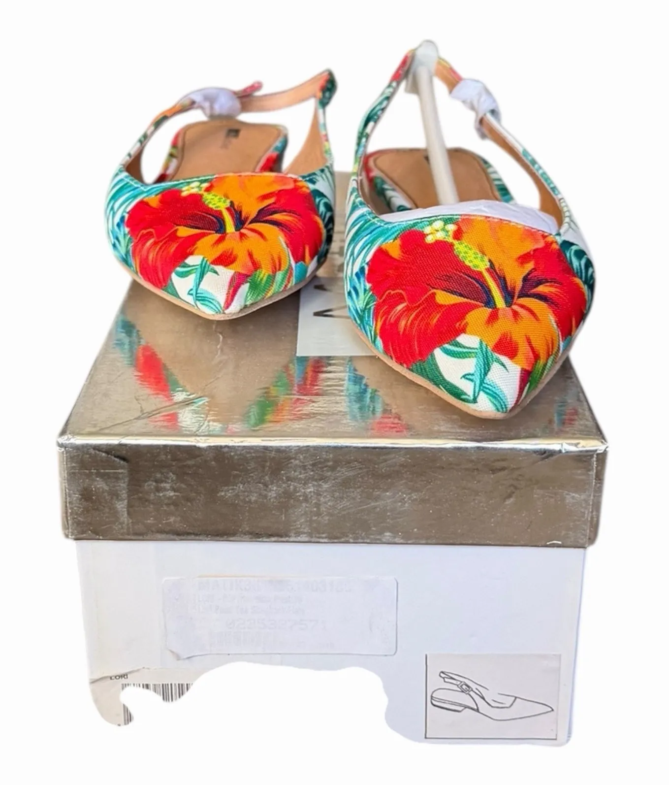 Step into effortless island-inspired style with these Matiko Lori slingback shoes. • Designed with a sleek pointed toe silhouette and a vibrant Hawaiian floral print, these shoes strike the perfect balance between playful and polished. • The adjustable slingback strap offers a customizable fit, while the leather lining adds comfort and quality. Perfect for resort wear, garden parties, baby showers, weddings, or anytime you want to add a cheerful pop of color to your outfit. Easily dressed up or down—pair with sundresses, linen pants, or cropped denim for a chic boho look. A standout piece for lovers of girlhood core, island prints, and boho chic style. Matiko shoes, Matiko Lori slingback, slingback shoes women, pointed toe slingback, Hawaiian print shoes, floral slingback shoes, island print shoes, resort wear shoes, boho chic shoes, girlhood core fashion, multicolor floral shoes, summer dress shoes, wedding guest shoes, garden party shoes, canvas slingback shoes, size 36 shoes women