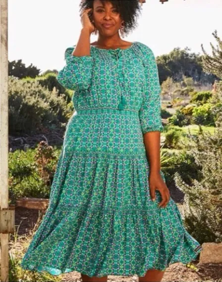Whimsical and vintage-inspired peasant dress featuring a soft cotton blend and flowy silhouette. Designed with colorful boho patterns and feminine details, it’s perfect for festivals, casual outings, or everyday wear. The relaxed fit and flattering shape make it effortlessly charming and comfortable for all-day style.