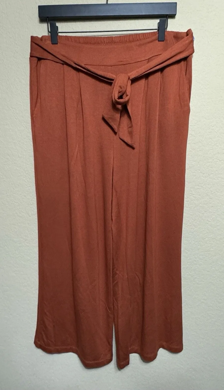 Matilda Jane Heart to Heart Warm Welcome Orange Wide Leg Knit Pull On Pants Women's Size L Tie Front... Show more