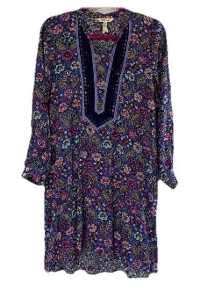Matilda Jane women's dress Thoughts and Dreams from The Adventure Begins collection Hi-low Long sleeve with buttons on cuffs Floral pattern Crochet details on front Side pockets Size S - please see photos of approximate measurements Excellent condition with no flaws Smoke free / kitty friendly home Please note : if you're buying a pre-owned clothing item, it has been cleaned / laundered in accordance with manufacturer recommendations per Ebay policy I do combine shipping for bundle purchases