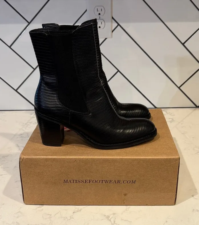 Matisse Mesmerize black textured leather pull-on chunky heel boots size 7 - $89 New With Tags - From Krystal