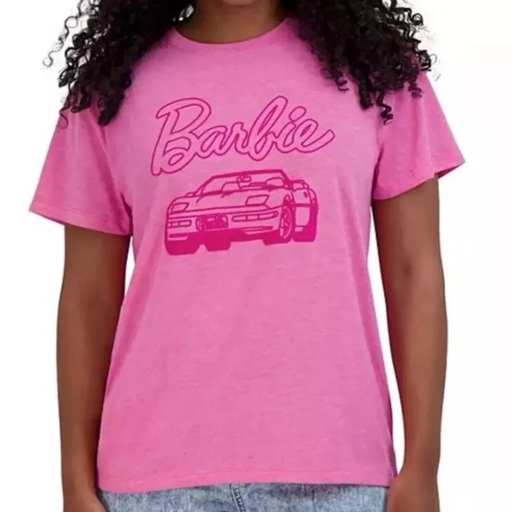 Mattel Barbie Graphic T Shirt Short Sleeve Car Velvet Print Tee pink Women’s XL - $9 - From Megan
