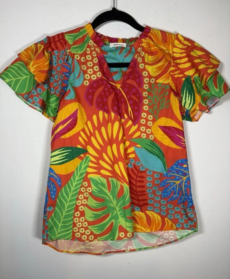MAUDE VIVANTE Colorful Flutter Sleeve V-Neck Ruffle Floral Blouse Size Small Red - $18 - From AMANDA