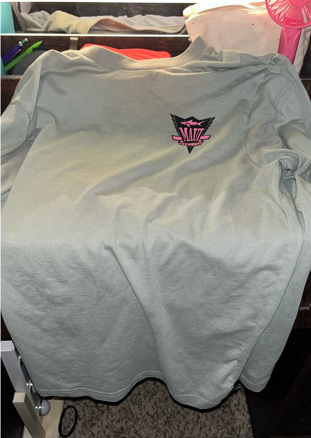 A long-sleeve mint green Maui shirt with a printed island-inspired design on the front. Comfortable, casual, and perfect for everyday wear. Size: Medium. Gray - $12 - From Jaelynn
