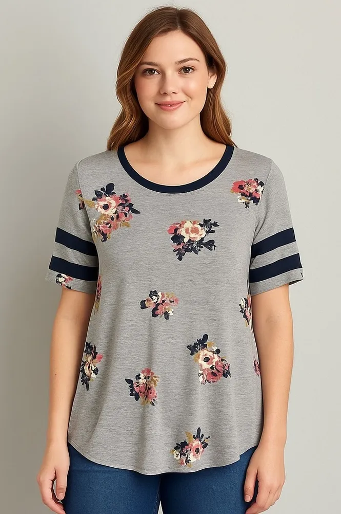 Maurices 24/7 Floral Flowers Loose Fit Tunic Shirt Grey Size Medium Pre-Owned, item is in good con... Show more