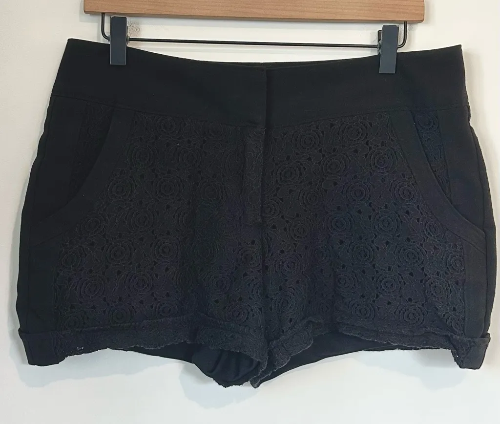 Maurices Black Lace Overlay Shorts Size: 7/8 Chic black lace shorts perfect for stylish outings.... Show more