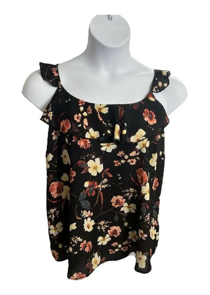 Maurices Black Pink Floral Blouse Size 0 Ruffle Neck Sleeveless Tie Pullover Great Pre-owned Condit... Show more