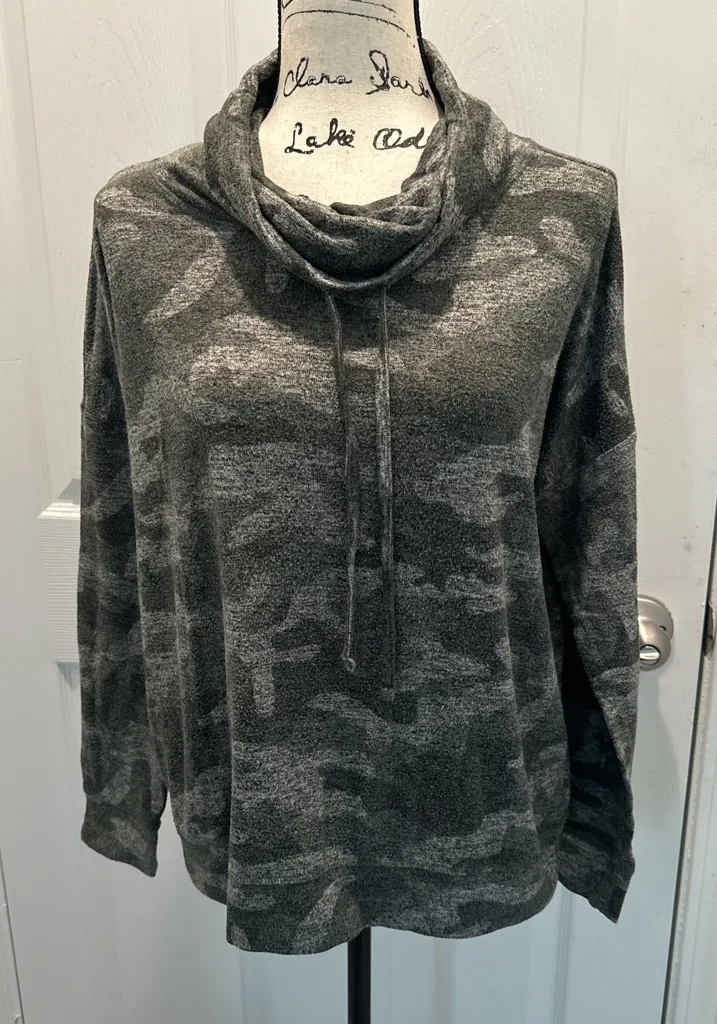 Stay cozy and stylish with this camouflage cowl neck sweater. Perfect for layering and adding a tou... Show more
