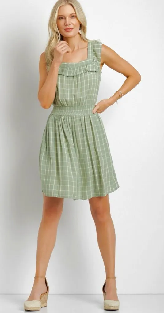 Description -Soft and comfortable fabric -Plaid print -Sleeveless -Square neckline with ruffle detai... Show more