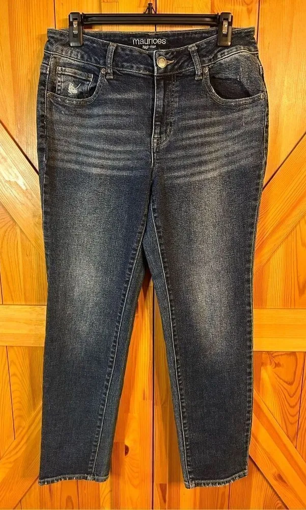 Maurices Jeans Women's Size 4R Blue Stretch Denim Distressed High Rise measurements 29” waist 28” in... Show more