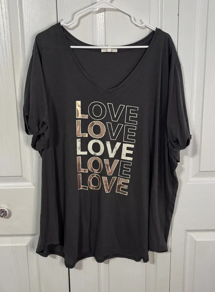 Excellent condition, gray v neck short sleeve love tee size 3XL Measurements are approximate Pit t... Show more