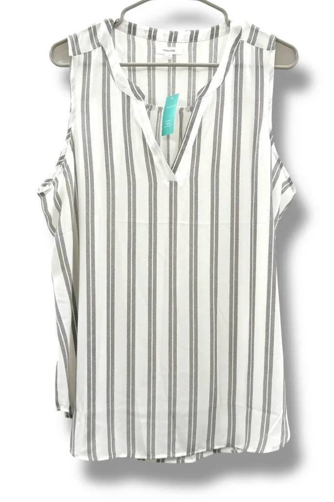 Maurices NWT Striped Sleeveless Blouse Women’s Size XXL White Gray This Maurices sleeveless blouse... Show more