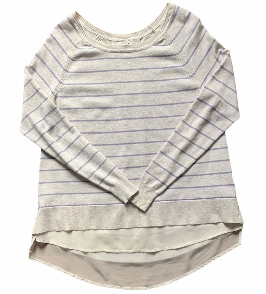 Maurices Striped Sweater with Blouse Shirttail Detail. Size Medium. Purple stripes with heathered oa... Show more