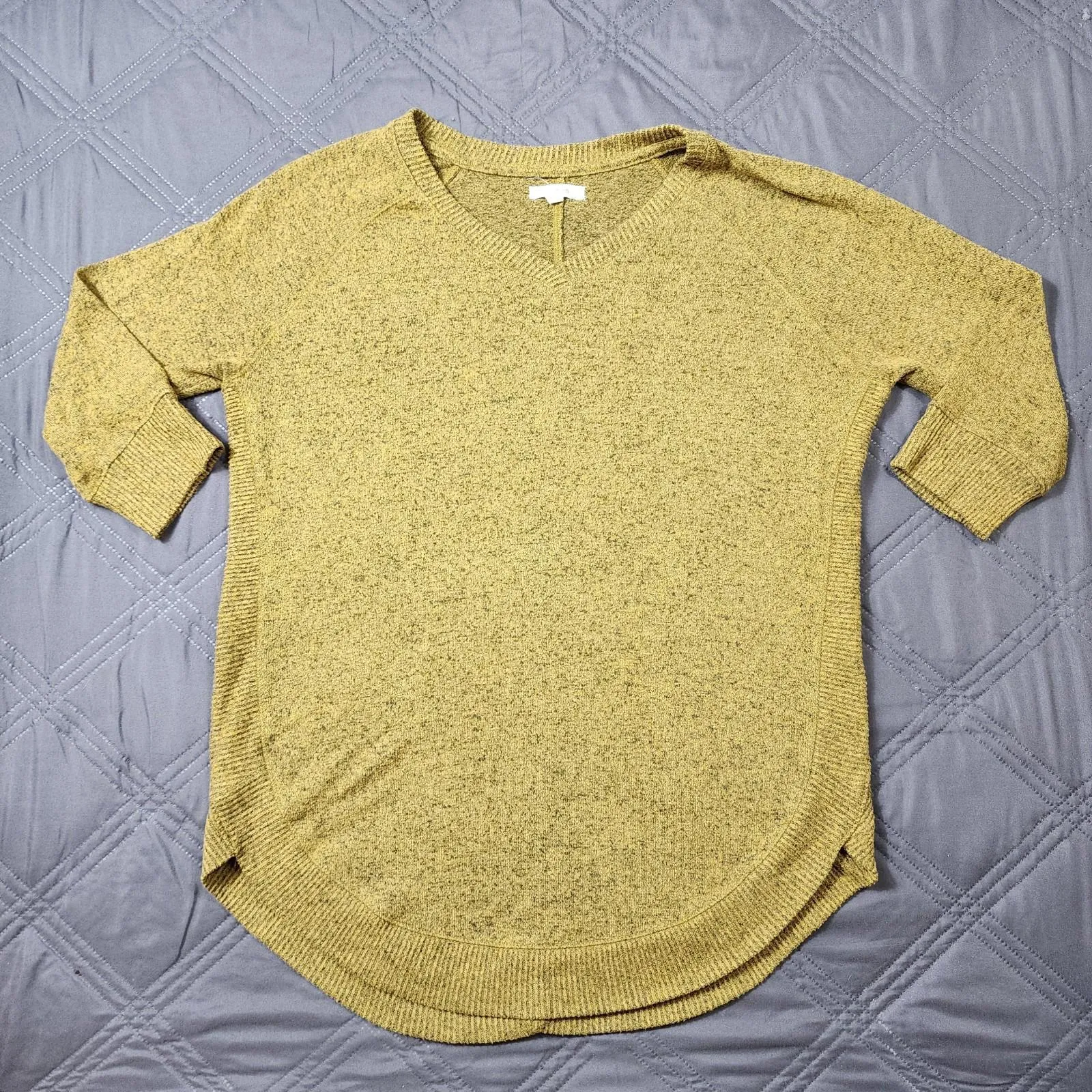Length: 27" Pit to pit: 21" The Maurices V-Neck Mustard Yellow Black Sweater is a stylish and vers... Show more