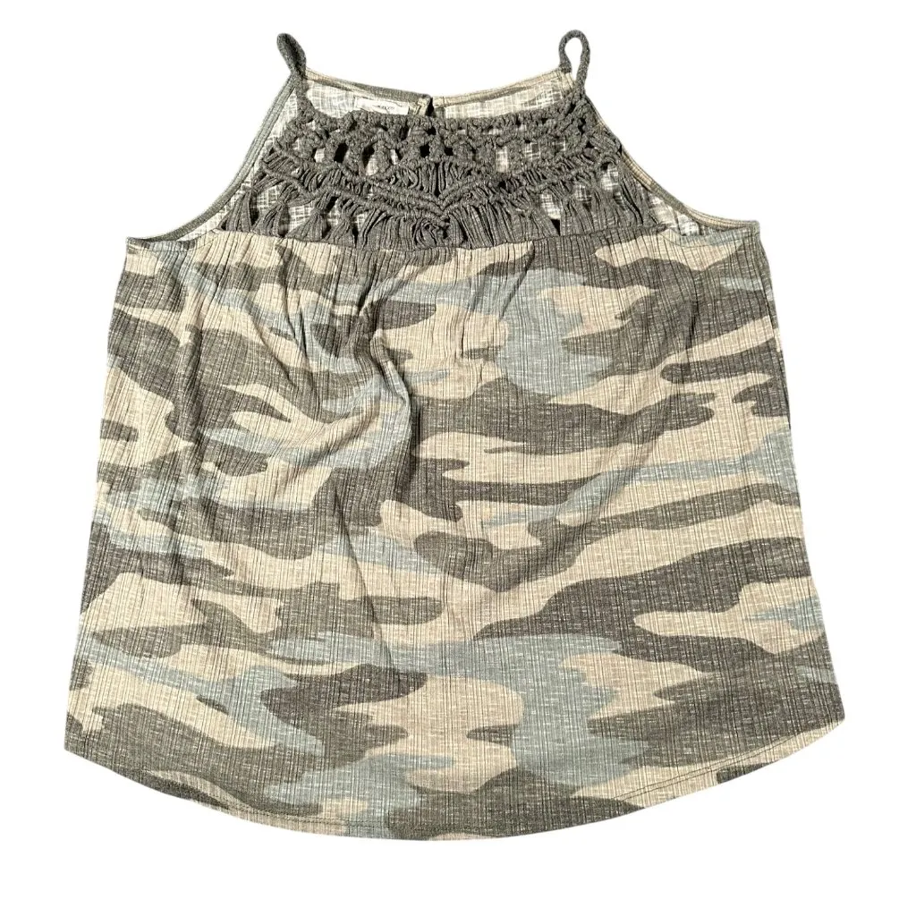 Through the weave of this halter top, the rugged charm of camouflage meets delicate crochet artistry... Show more