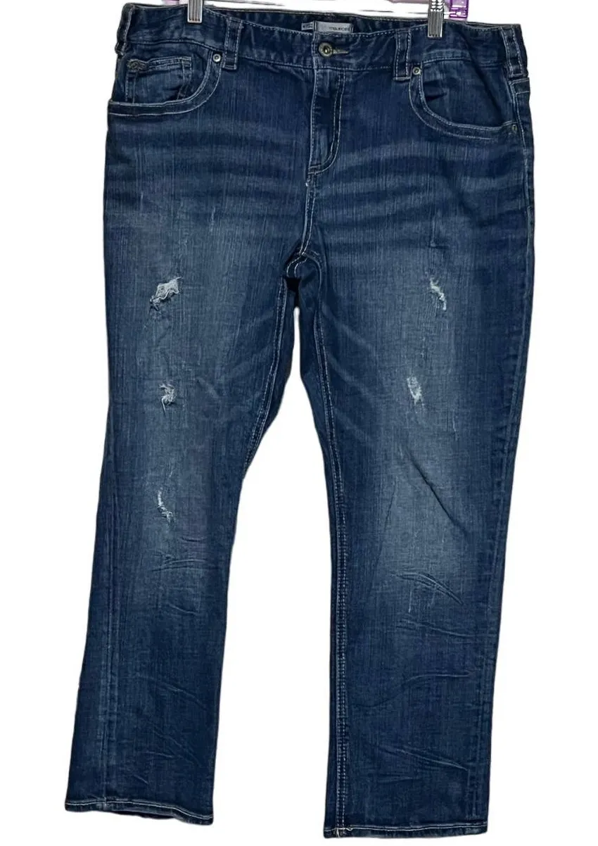 Maurices Women's Ripped Mid Rise Stretch Denim Jeans Size 18 27" Inseam x 18" Waist x 10" Rise