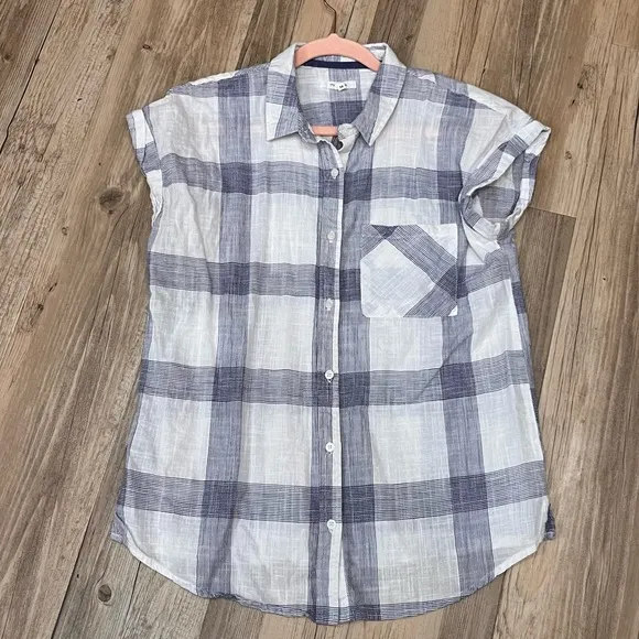 Maurices women's shirt white & blue plaid collar button up pocket sz Medium. Super cute. Dress it up... Show more