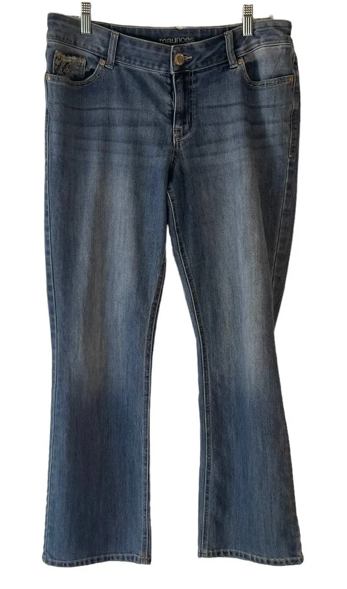 Maurices Women's Size 12 Button Pocket Embroidered Medium Wash Straight Jeans Medium washed Mid-r... Show more