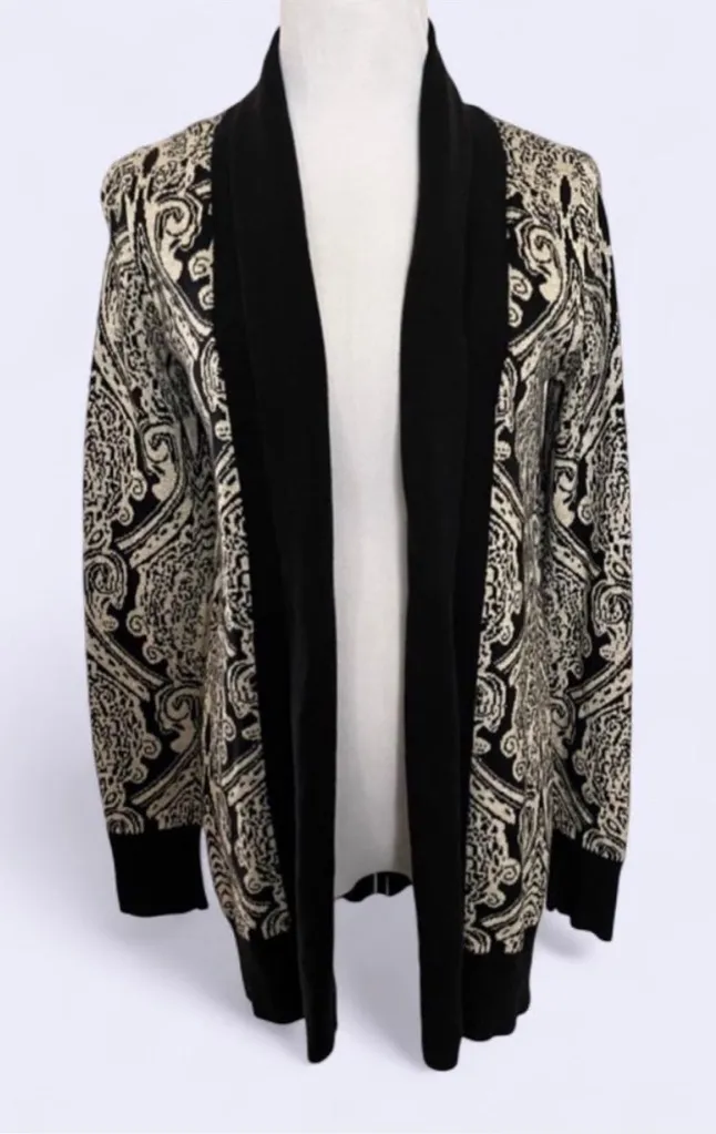 The paisley print will have you looking fresh as a daisy in this double knit cardi. Size: S Color: B... Show more