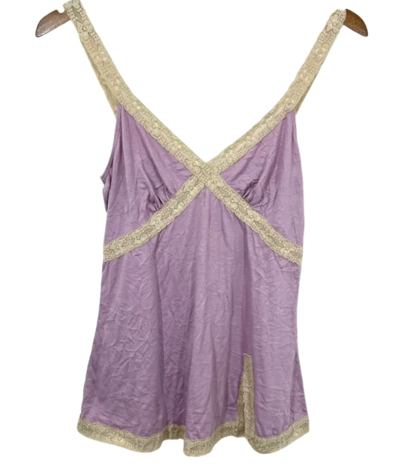 Maurices Y2K 90s Lace Trimmed Purple V Neck Babydoll Camisole Cami Layering Pre-Owned Vintage in Gre... Show more