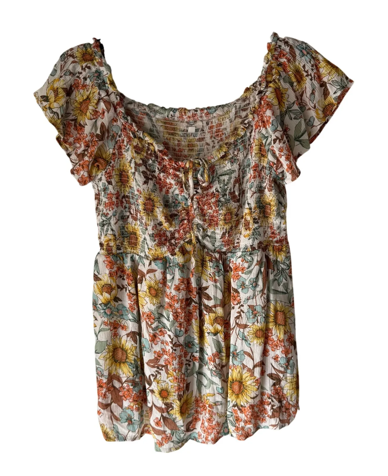 Maurices Y2k Size Large Sunflower Floral Flutter Sleeves Babydoll Top Item is in excellent prelove... Show more