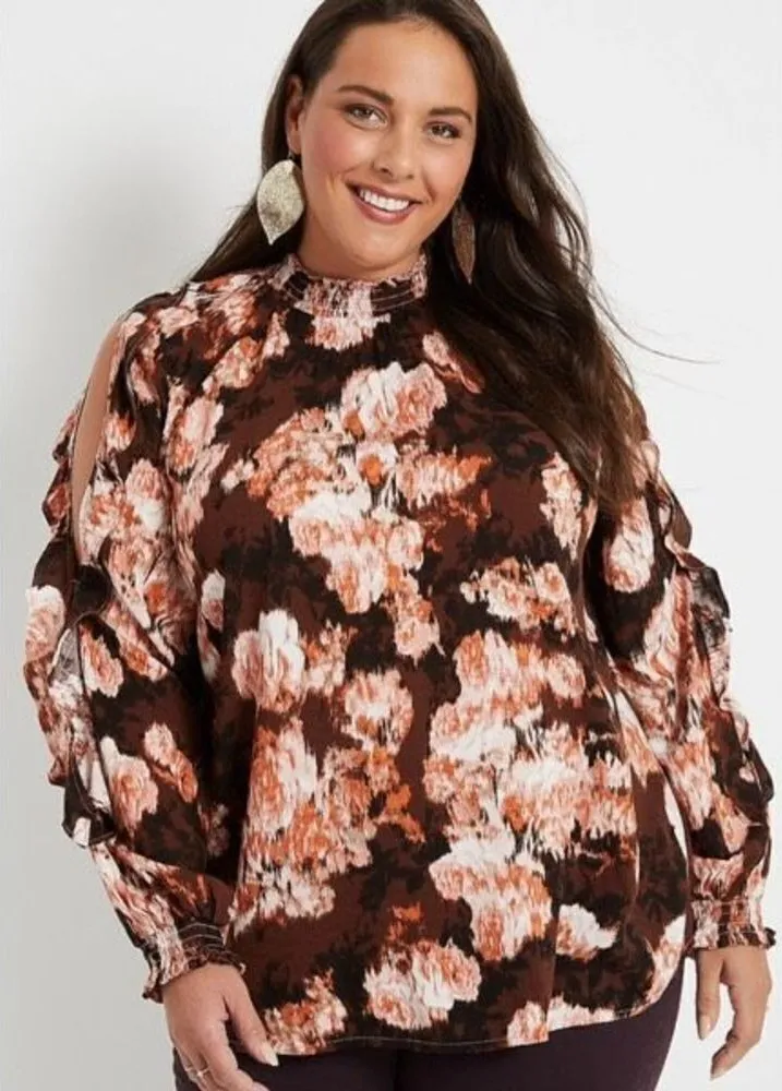 NWT Maurices Plus Size Brown Floral Cut Out Sleeve Blouse XXL Fall Autumn Leaves Size XXL Lightwei... Show more