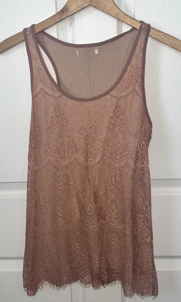 Beautiful lace overlay pink tank top in a soft pink shade. Features delicate floral lace pattern thr... Show more