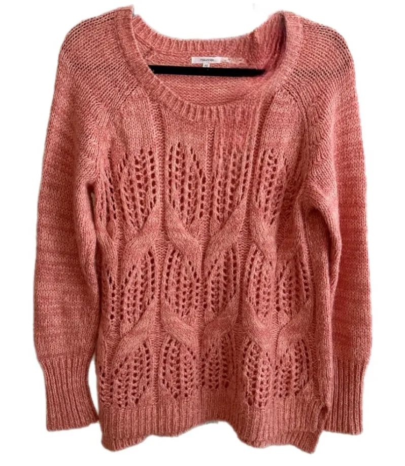 Maurices Pink Knit Scoop Neck Textured Raglan Sleeve Sweater Size Large Pit to Pit: 21” relaxed / 2... Show more
