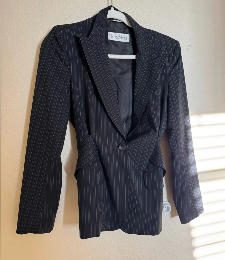 MaxMara‎ Wool Pin Striped Fitted Blazer Jacket Sz 6 in Black Grey Tailored Fit - $90 - From Valerija