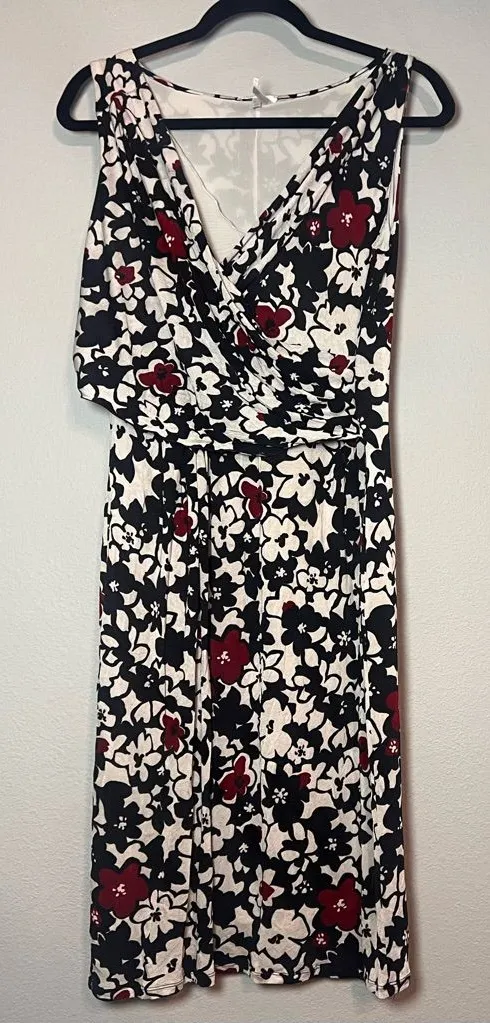 Small holes in front drape have been repaired but caused a pucker as pictured. Also large discoloration on chest as shown in last picture No material tag attached so unsure what it is made of. Stretchy material with semi sheer top layer. Lined. Faux wrap Drapey top Floral design MaxMara Armpit to armpit 17.5 Length: 41