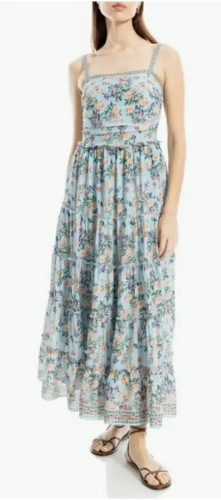MAX STUDIO Floral Print Maxi Dress Color: Blue Peach Heritage Bouquet Size: Large (12-14) Condition... Show more